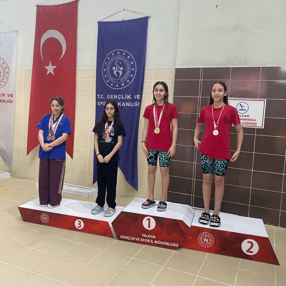 Yalova İli küçükler yüzme yarışmasında 4 altın madalya 8 gümüş madalya ve 8 bronz madalya alarak toplam 20 madalyayla il 2.olduk.